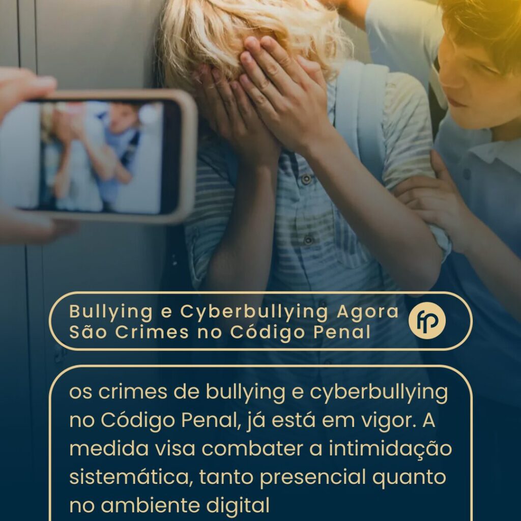 Nova Lei Inclui Bullying e Cyberbullying no Código PenalA Lei 14.811/24, que inclui os crimes de bullying e cyberbullying no Código Penal, já está em vigor. A medida visa combater a intimidação sistemática, tanto presencial quanto no ambiente digital, com penas que podem chegar a 4 anos de reclusão. O Que Diz a Nova Lei?📌 […]