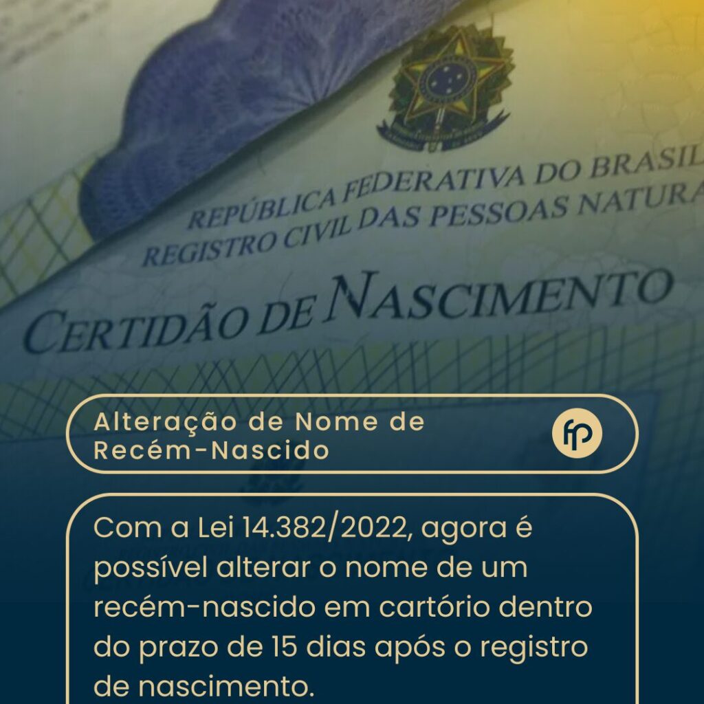 Nova Legislação Com a Lei 14.382/2022, agora é possível alterar o nome de um recém-nascido em cartório dentro do prazo de 15 dias após o registro de nascimento. Procedimento para a Mudança Importância da Lei Essa alteração facilita o processo para os pais que desejam ajustar o nome do filho logo após o nascimento, promovendo […]