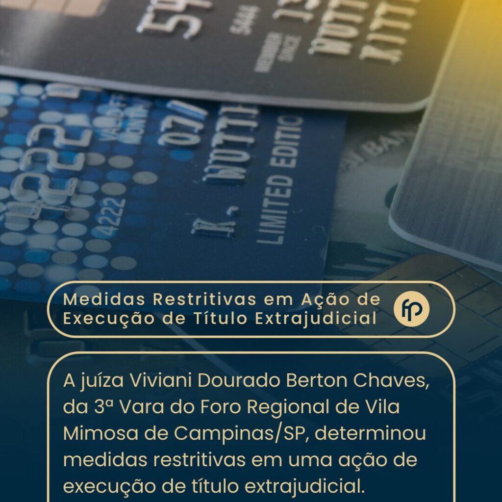 Contexto A juíza Viviani Dourado Berton Chaves, da 3ª Vara do Foro Regional de Vila Mimosa de Campinas/SP, determinou medidas restritivas em uma ação de execução de título extrajudicial. A decisão inclui: Essas medidas têm como objetivo garantir a efetividade na cobrança de um débito originado de um cheque. Histórico da Ação A ação foi […]
